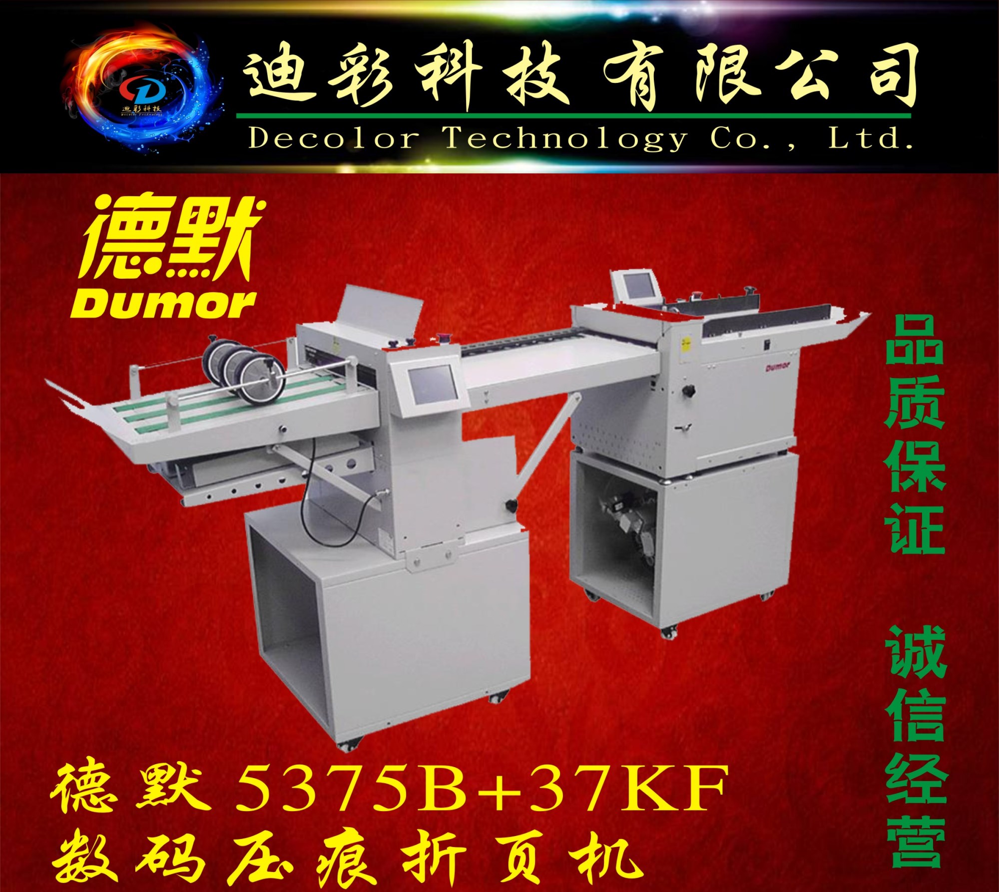 廣西迪彩科技有限公司是一家專(zhuān)業(yè)從事印后裝訂設(shè)備和耗材銷(xiāo)售與服務(wù)的企業(yè)。公司經(jīng)營(yíng)產(chǎn)品涵蓋了從膠裝、切紙到裝訂成冊(cè)等多種印后裝訂設(shè)備及耗材,經(jīng)營(yíng)的品牌有:前鋒、宏基、明月、惠普樂(lè)、德默、佳能、道頓、迪霸、光明、森威、新彩、經(jīng)典、科創(chuàng)、湘圖、迪仕冠、海軍上將、理鋒、艾美多、好利用等。公司致力于為客戶(hù)提供多方位的裝訂解決方案與售后服務(wù)。 公司主營(yíng)產(chǎn)品有:膠裝機(jī)、切紙機(jī)、覆膜機(jī)、數(shù)碼壓痕機(jī)、數(shù)碼壓痕折頁(yè)機(jī),數(shù)碼壓痕裁切機(jī),疊圖機(jī)、繪圖儀、工程機(jī)、異形切割機(jī)、騎馬釘、冷裱機(jī),訂折機(jī)、燙金機(jī)、圓角機(jī)、淋膜機(jī)、塑...